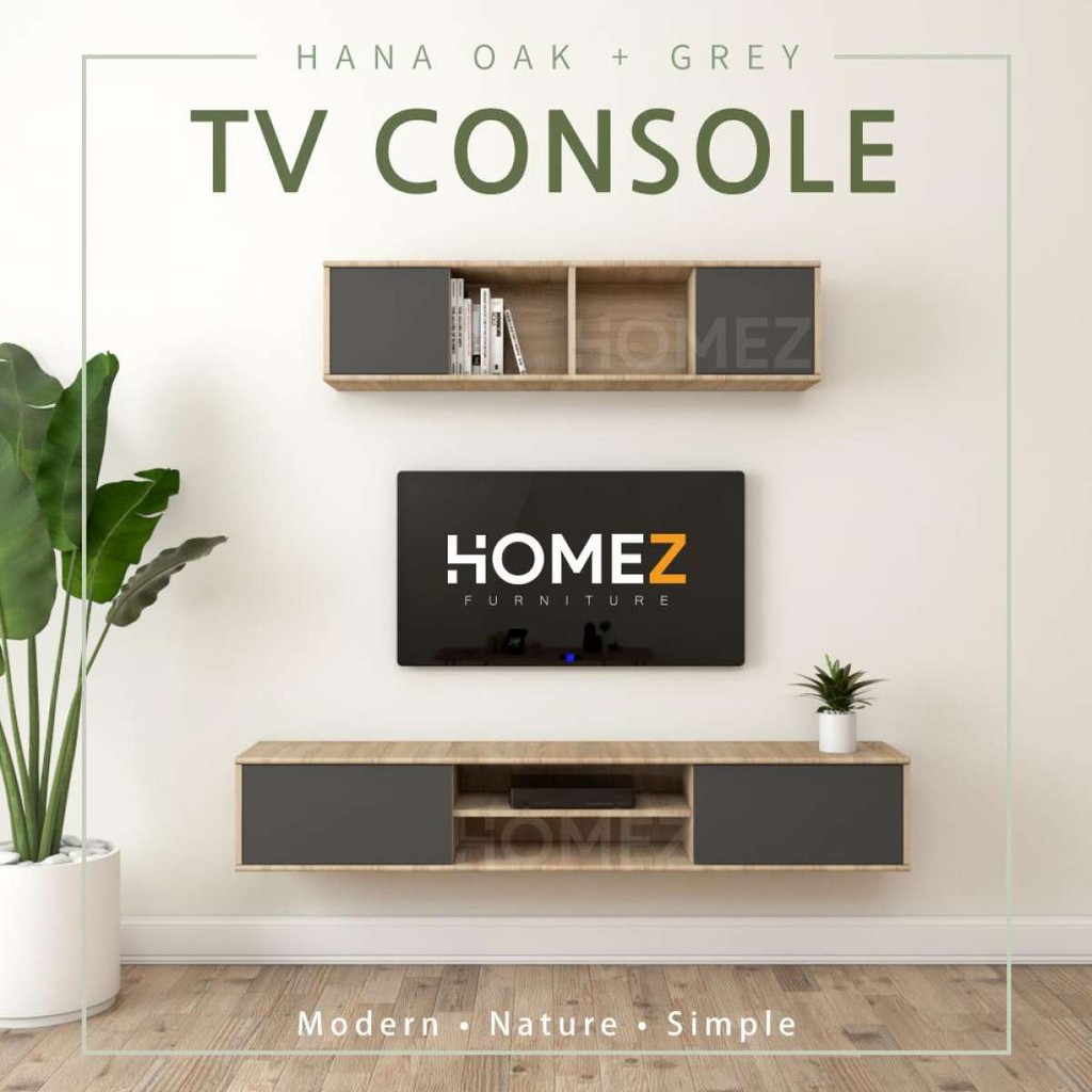 Homez Wall Mount Tv Cabinet Upper Lower Cabinet Hana Oak Shopee Malaysia