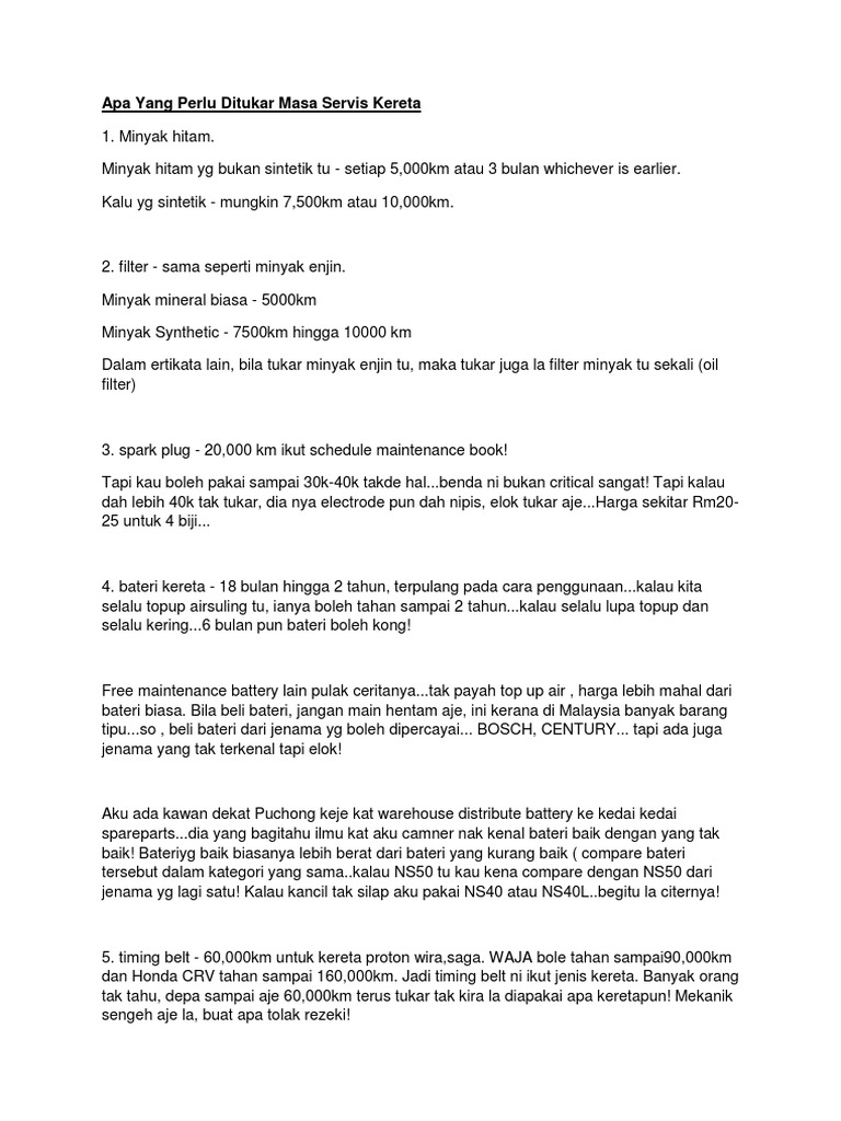 Apa Yang Perlu Ditukar Masa Servis Kereta