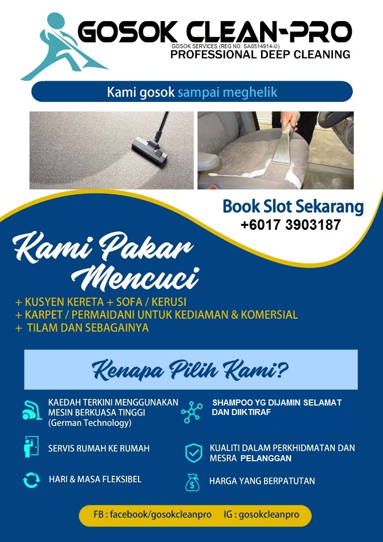 Perkhidmatan Mencuci Kusyen Kereta Sofa Tilam Karpet Dll Gosok Cleanpro