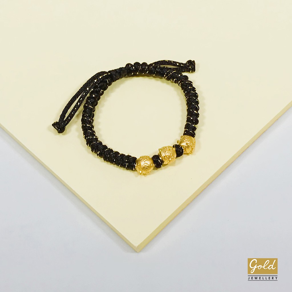 Gelang Tali Emas Hongkong 24k 999 3 Babi Pig Bulat Tali Hitam Shopee Indonesia
