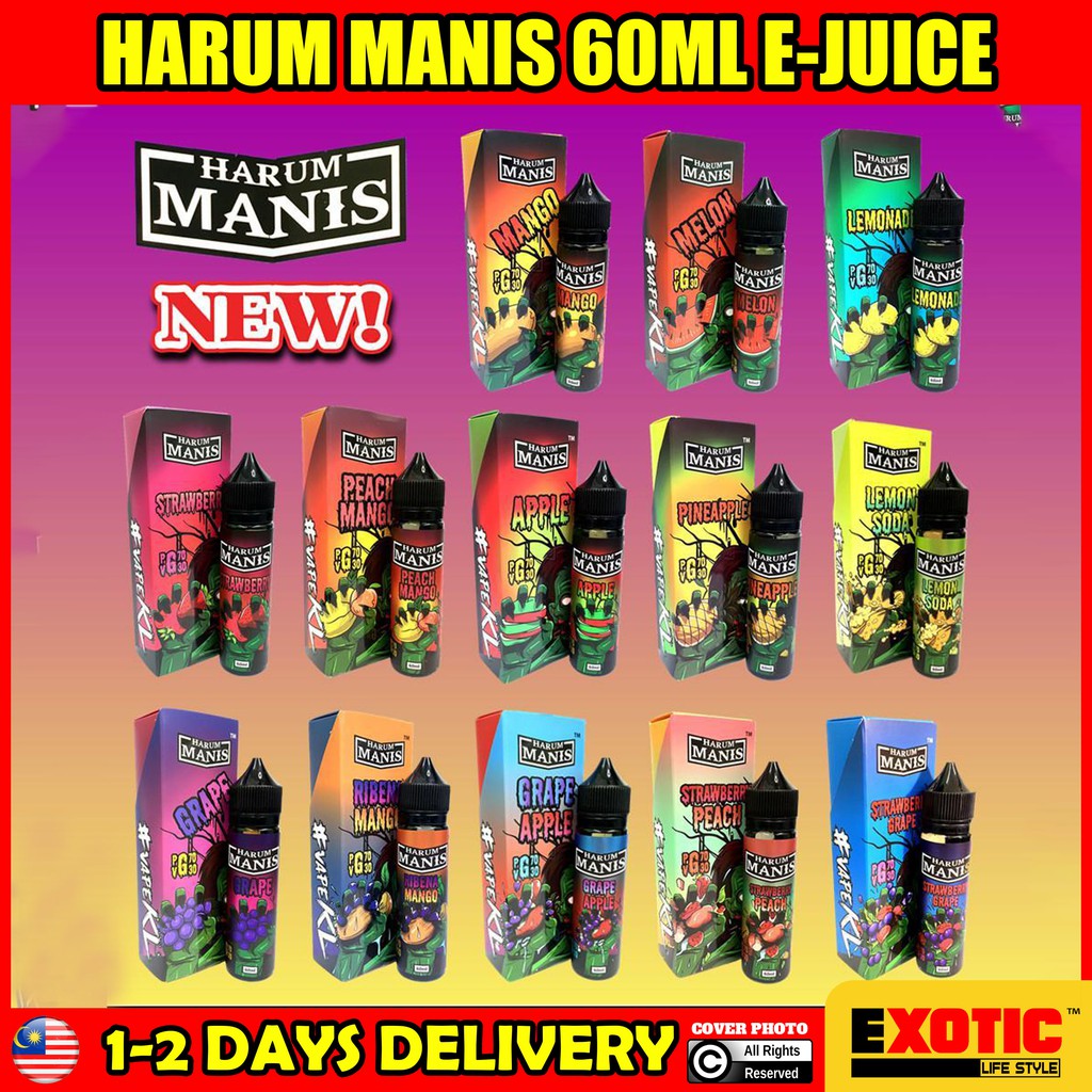 Vape Juice Harum Manis 60ml Melon Grape Mango Peach Mango 13 Flavor E Juice Freebase For Mod