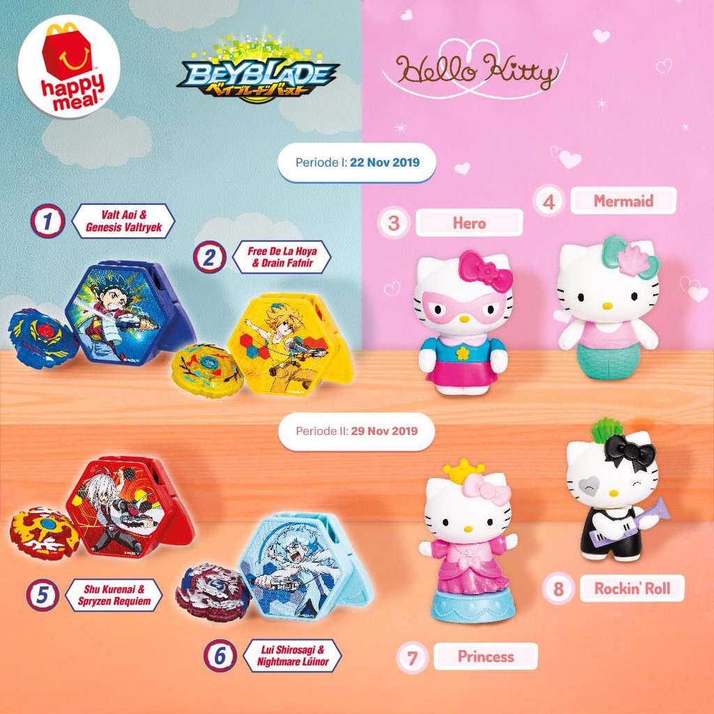 Happy Meal Beyblade Hello Kitty Mc Donalds Mcd November 2019 Shopee Indonesia