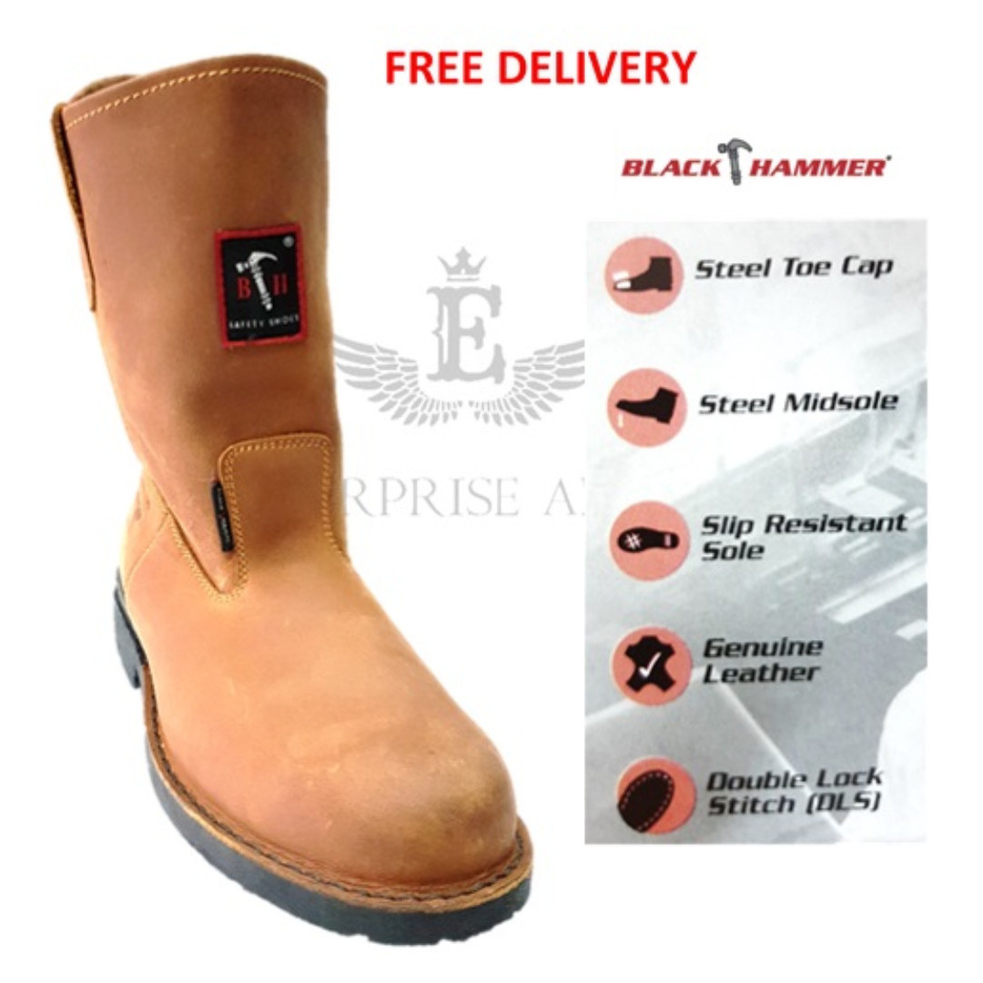 Black Hammer 4000 Series Men Safety High Cut Slip On 4666 Black Hammer Safety Boots Shopee Malaysia
