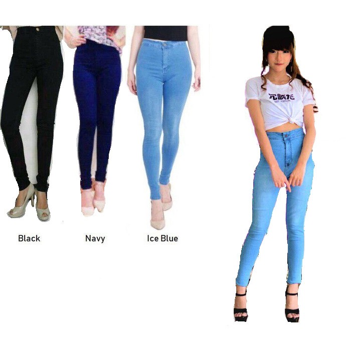Celana Jeans High Waist Wanita Hw Blue Black Di Lapak Hagon Magnus Bukalapak