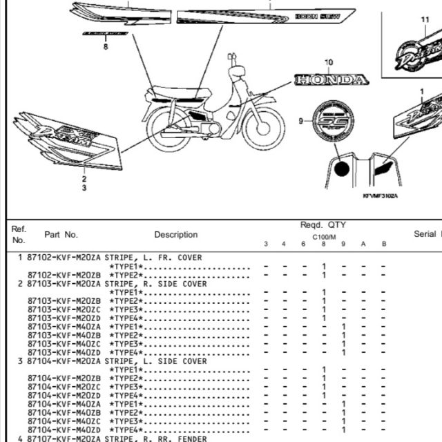 Honda Ex5 Dream 100 Spare Part Catalog Manual