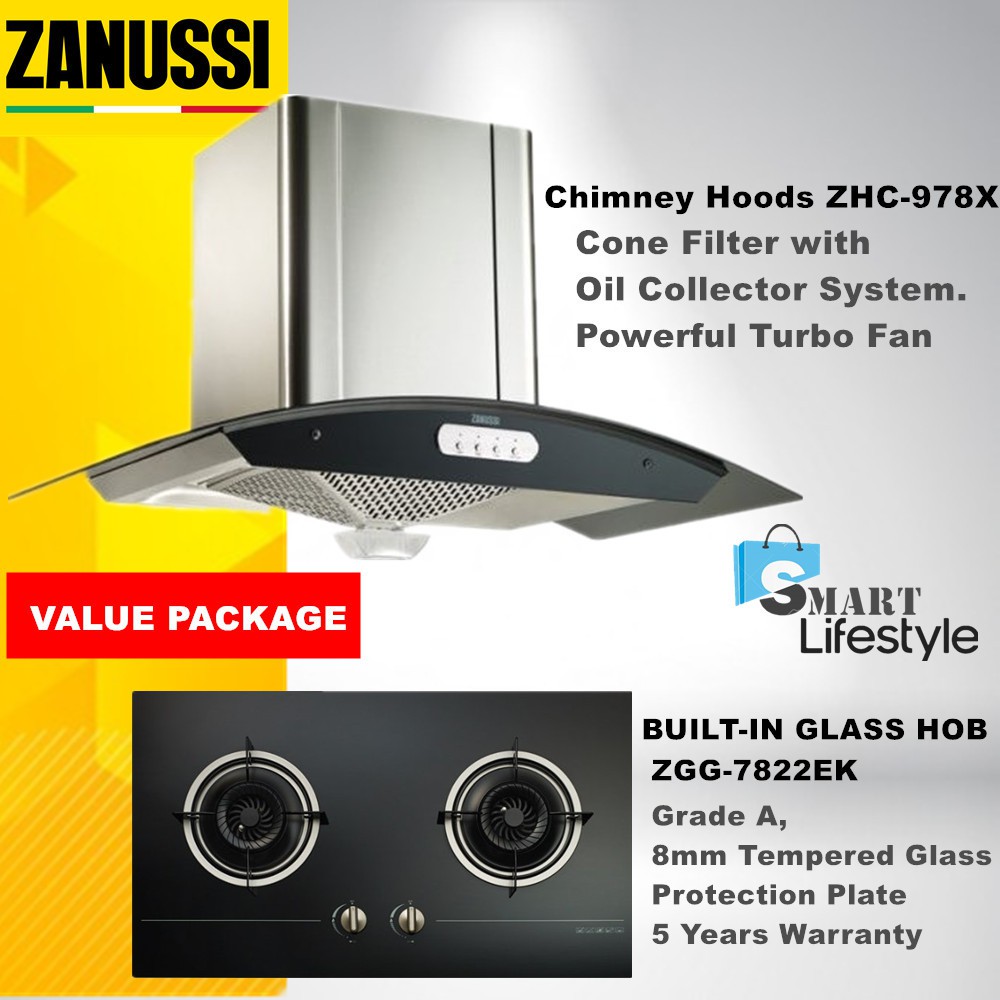 Zanussi Chimney Hood Zhc 978x With Built In Glass Hob Zgg 7822ek Value Package Shopee Malaysia