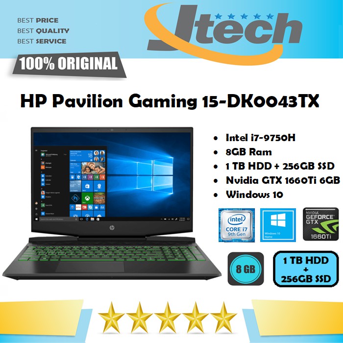 Hp Pavilion Gaming 15 Dk0043tx I7 9750h 8gb 1tb 256ssd Gtx1660ti 6gb 15 6 Win10 Shopee Indonesia