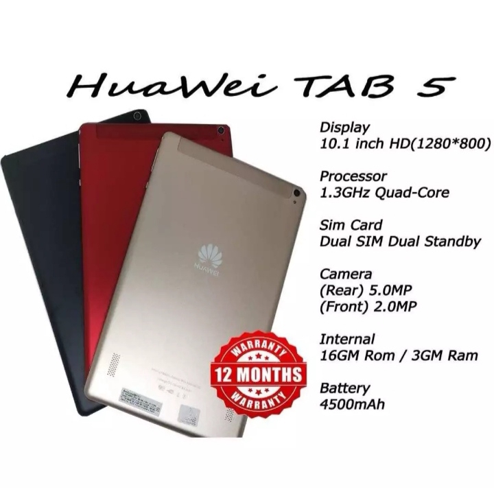 Readystok Huawei Tab 5 10 1 Hd Tablet Android Tablet Dual Sim Memory Card 32gb Rom 3gb Ram Shopee Malaysia