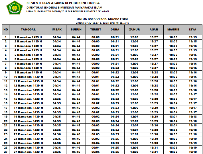 Jadwal Imsakiyah Kabupaten Muara Enim 2020 Puasa Ramadhan 1441 H Gingsul Com
