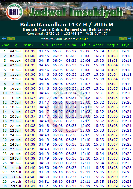 Jadwal Imsakiyah Kota Muara Enim 2016 Jadwal Puasa Ramadhan 1437 Hijriyah 2016