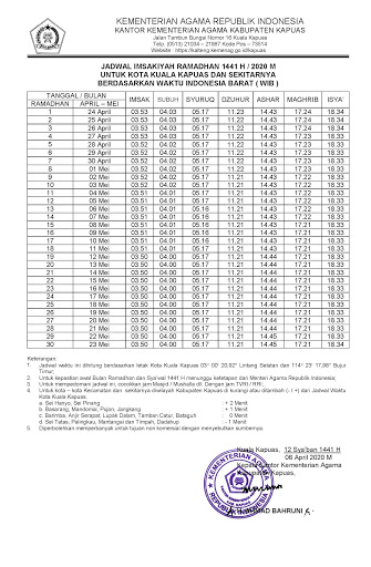 Jadwal Imsakiyah Ramadhan 1441 H 2020 M Untuk Kota Kuala Kapuas