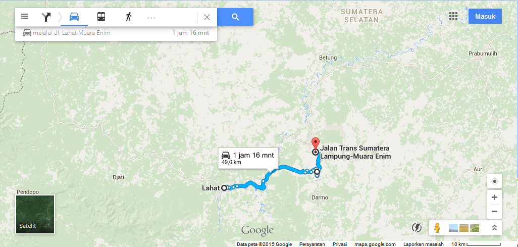 Palembang Lahat Jarak Antara Kota Km Mi Mengemudi Arah Jalan