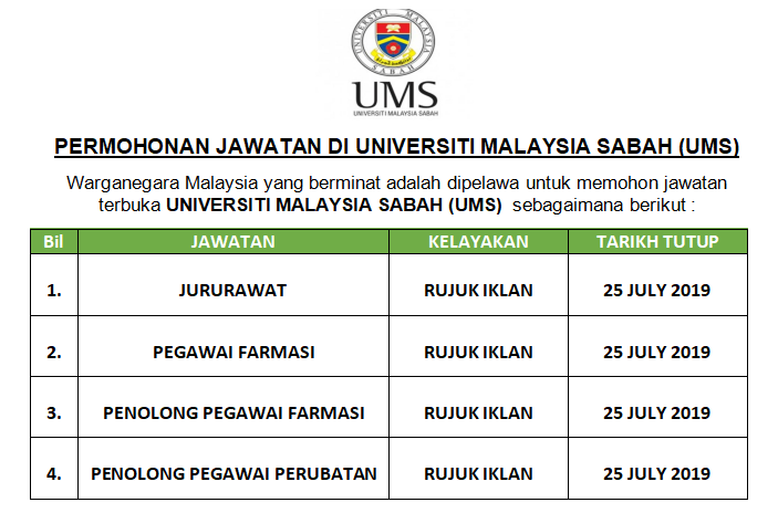 Jawatan Kosong Di Universiti Malaysia Sabah Ums Kini Dibuka Jawatan Kosong Terkini