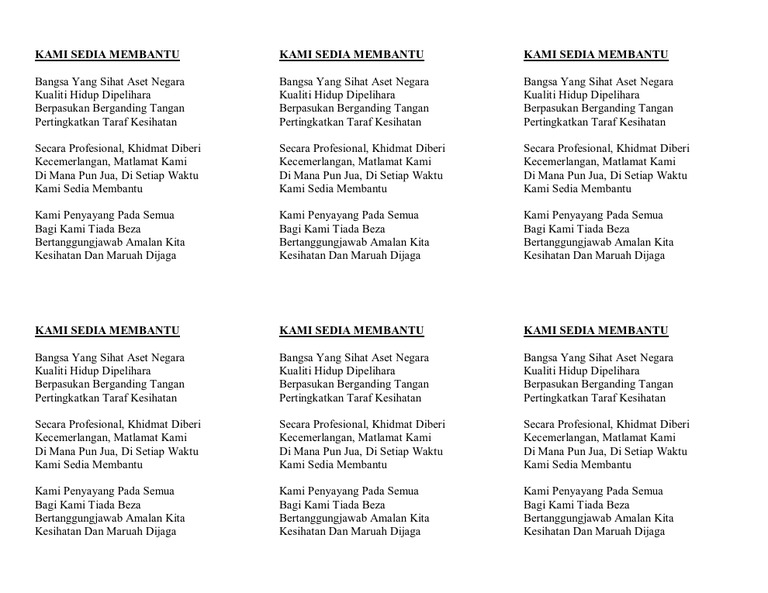 M2 Hospital Sentosa Kuching Lirik Lagu Kami Sedia Membantu Lagu Tema Kkm