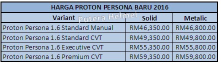 Harga Dan Spesifikasi Proton Persona Baru 2016 Blog Putera Helmei