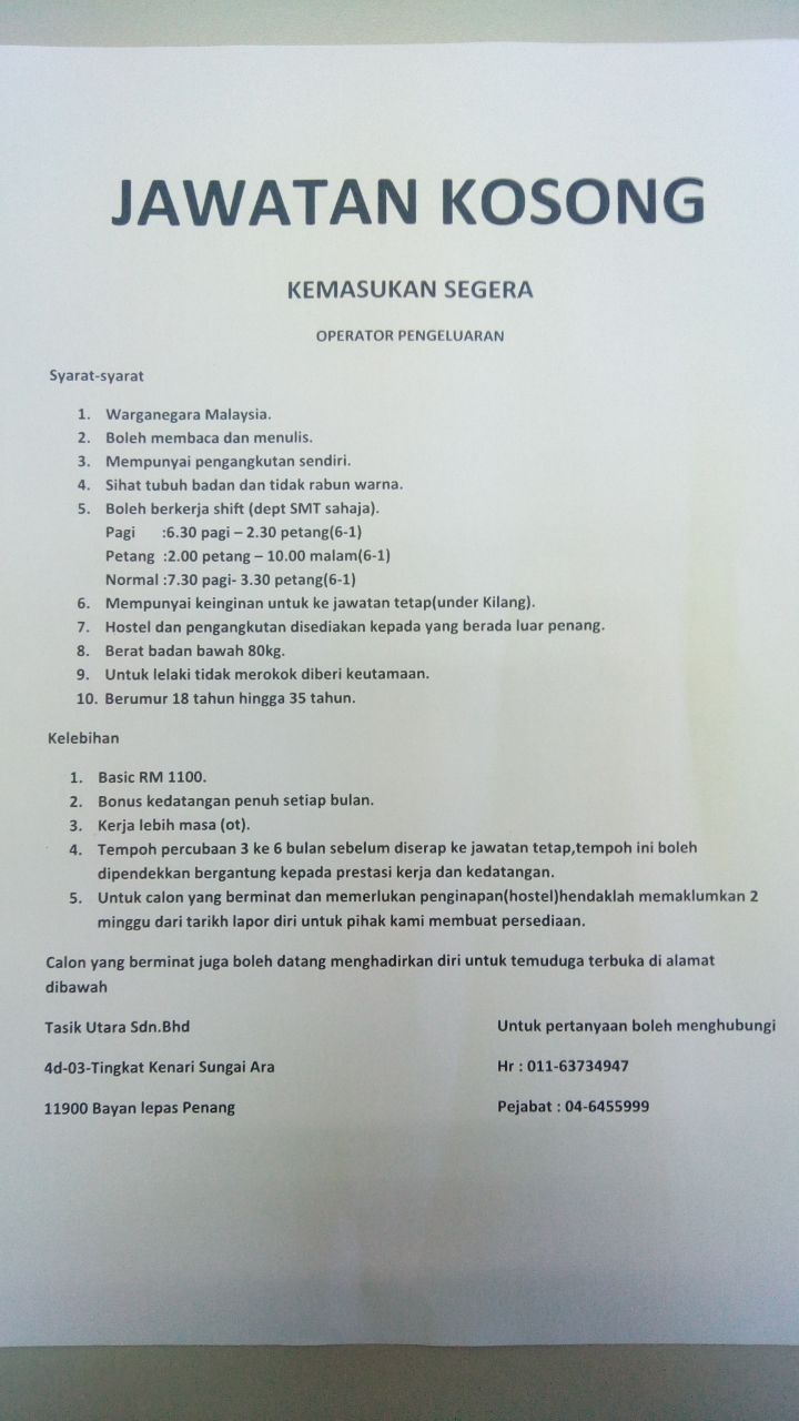 Kerja Kosong Kilang Penang Posts Facebook