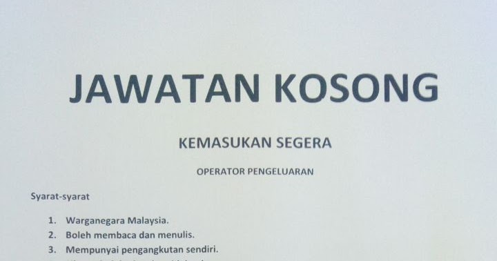 Kerja Kosong Operator Diperlukan Kerja Kosong Malaysia