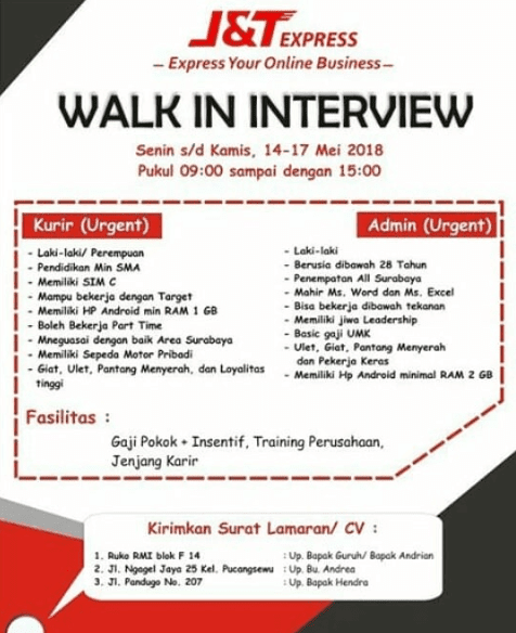 Lowongan Kerja J T Express Surabaya Dan Sekitarnya Lowongan Kerja Terbaru