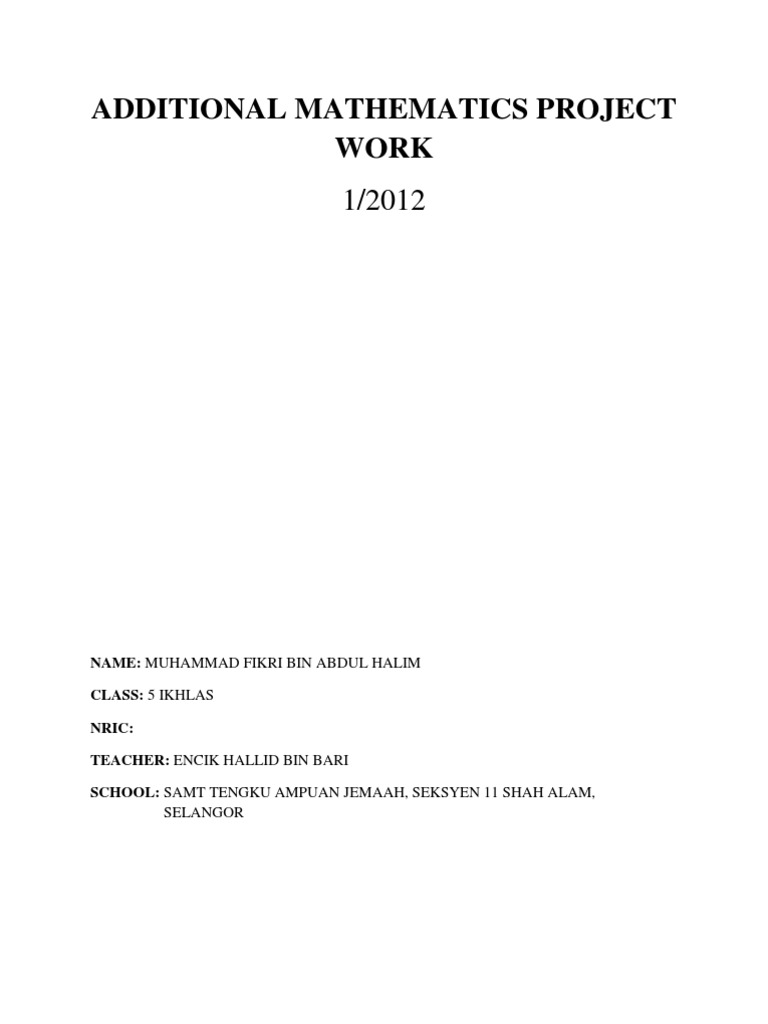 Malaysia Students Spm Additional Mathematics Add Math Project Work Answers Jawapan Kerja Projek Matematik Tambahan