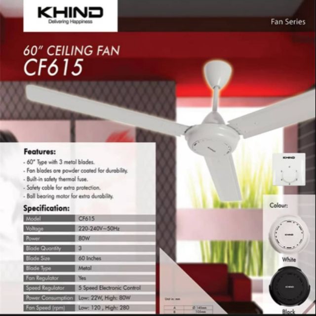 Khind 60 Ceiling Fan Cf615 3 Year Warranty Cf615b White Black Shopee Malaysia