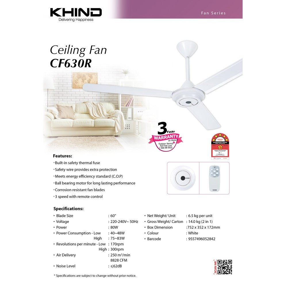 Remote Control Khind Ceiling Fan 60 Inch Cf 630r With 3 Speed 3 Year Warranty Cf630r 1 2 Units Kipas Siling Lazada