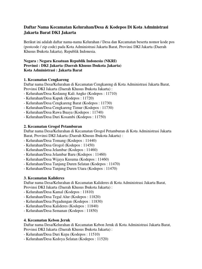 Pdf Daftar Kecamatan Dan Kelurahan Www Didiarsandi Com Daerah Khusus Ibukota Jakarta Didi Arsandi Academia Edu