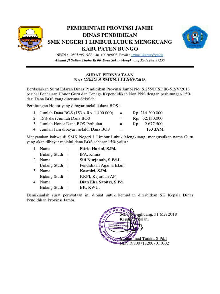 Pemerintah Propinsi Jambi Dinas Pendidikan Smk Negeri 1 Limbur Lubuk Mengkuang Kabupaten Bungo