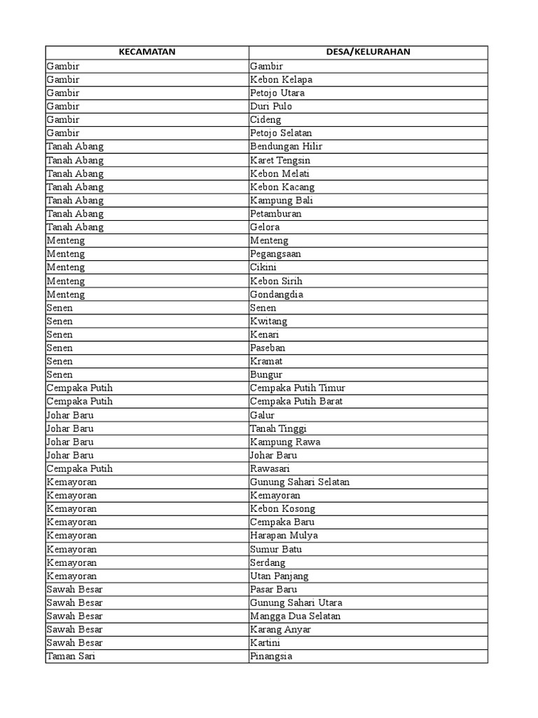 Daftar Nama Kecamatan Kelurahan Okus Doc