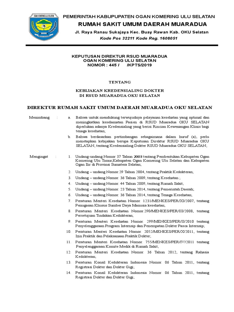 Rumah Sakit Umum Daerah Muaradua Pemerintah Kabupupaten Ogan Komering Ulu Selatan
