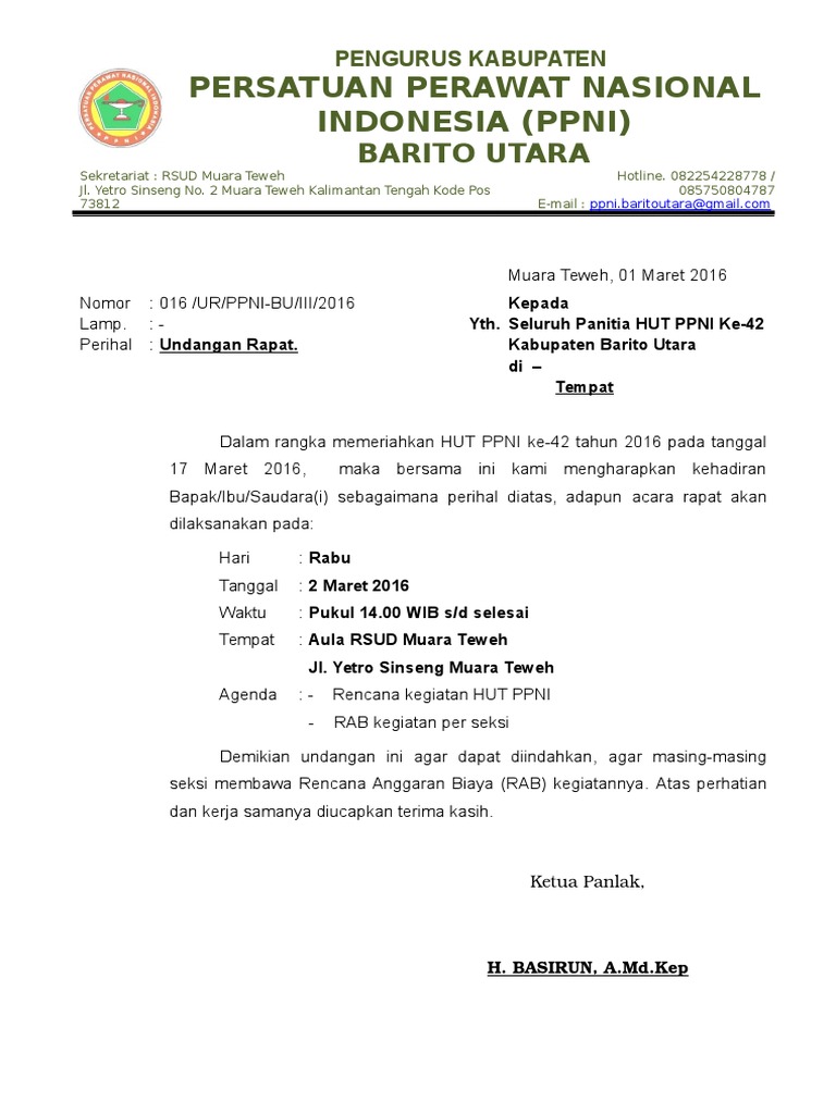 Surat Undangan Rapat Hut Ppni