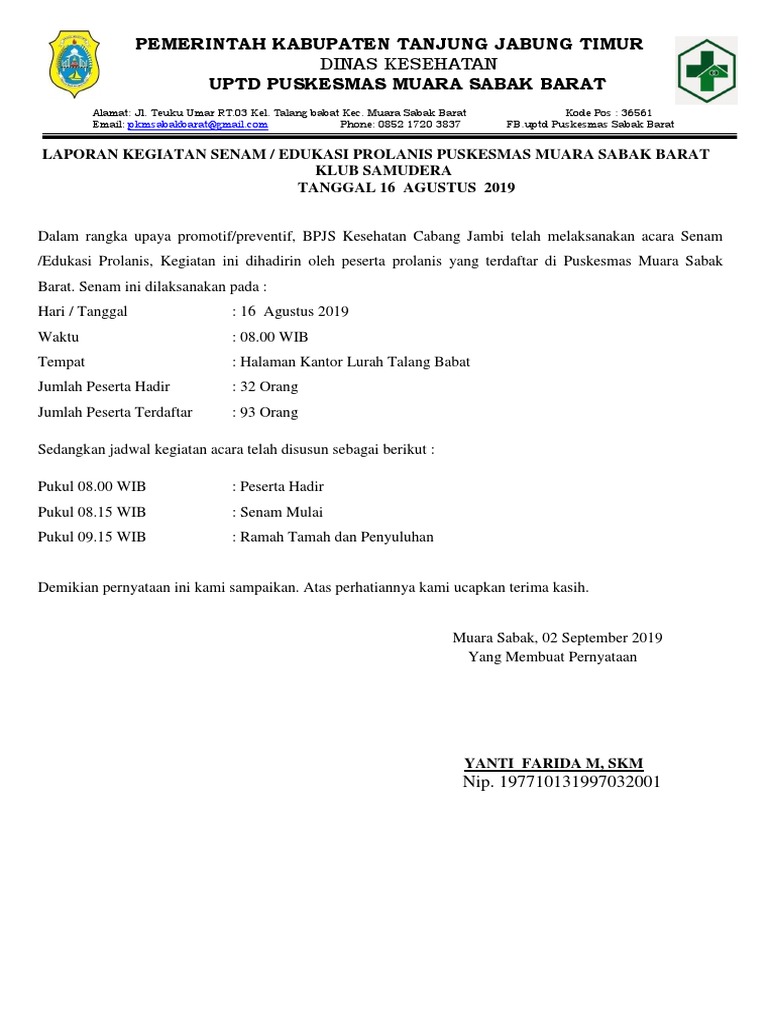 Pemerintah Kabupaten Tanjung Jabung Timur Dinas Kesehatan Uptd Puskesmas Muara Sabak Barat