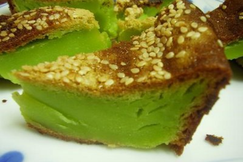 Kuih Bakar Pandan Custard Cake