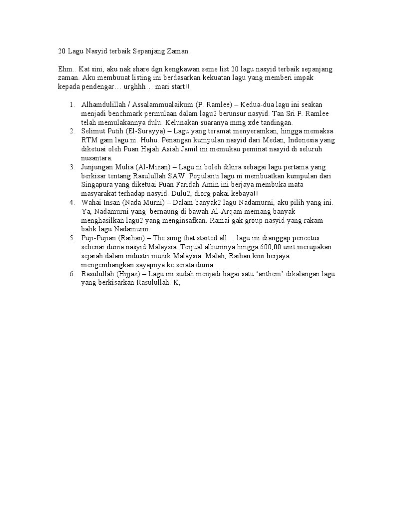 26 Lagu Nasyid Terbaik Dan Paling Popular 2018 Lihat Lirik Dan Muaturun Mp3 Blog Che Ahmad
