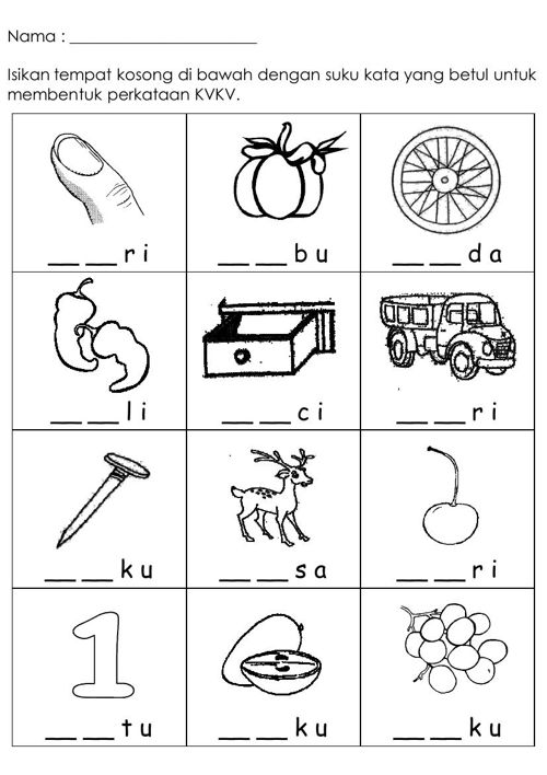 Bahasa Malaysia Prasekolah Latihan Suku Kata Preschool Learning Activities School Kids Activities Preschool Activities