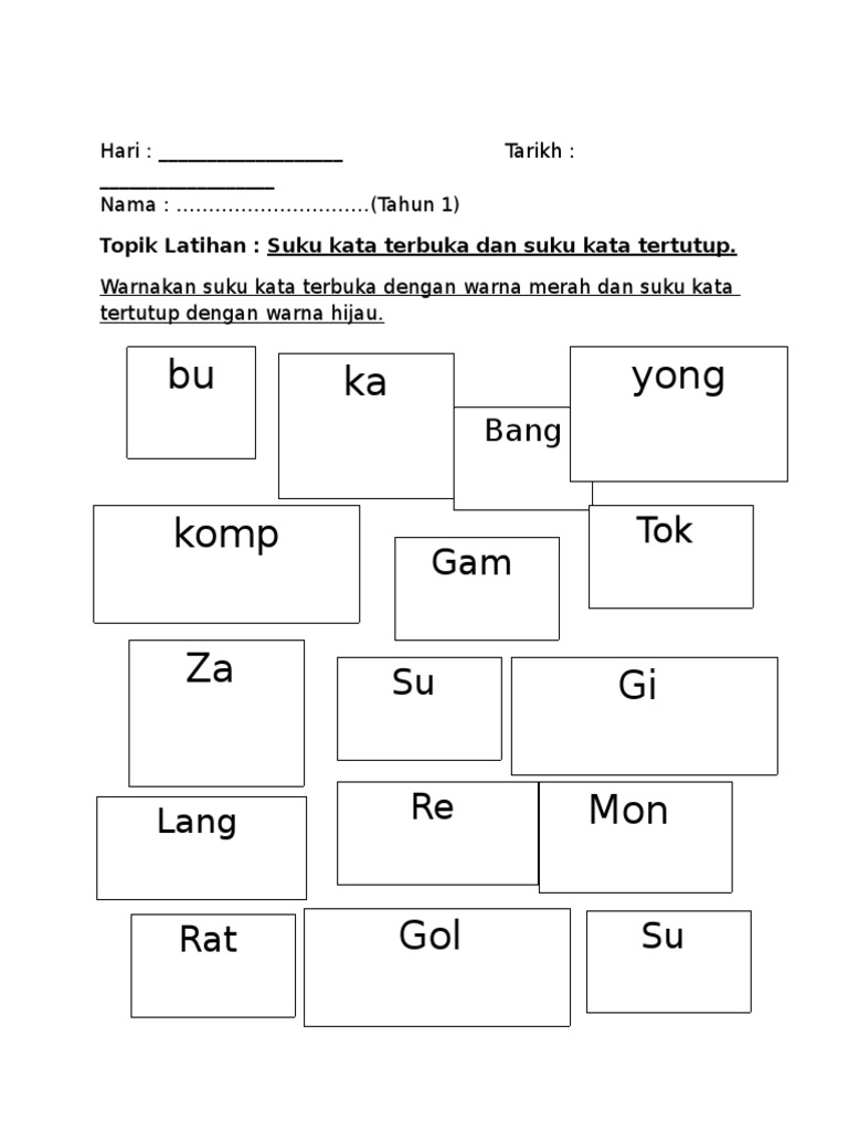Mari Belajar Bahasa Melayu Latihan Suku Kata