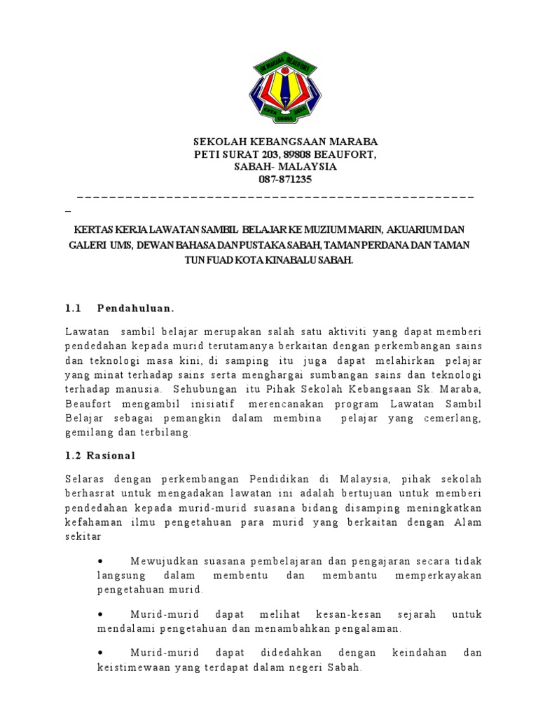 Doc Kertas Kerja Lawatan Sambil Belajar Unit Lawatan Dan Pembelajaran Tarikh 28 Ogos 2014 Kamariah Kamisan Academia Edu