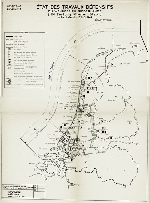 Gertrude Fortifications Littorales Le Mur De L Atlantique Illustration N 12 Legende Significatif False Legende Carte De L Etat Des Travaux Defensifs Du Wehrbezirk Niederlande 15e Festung Pionier Stab A La Date Du